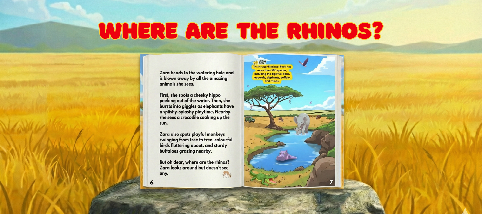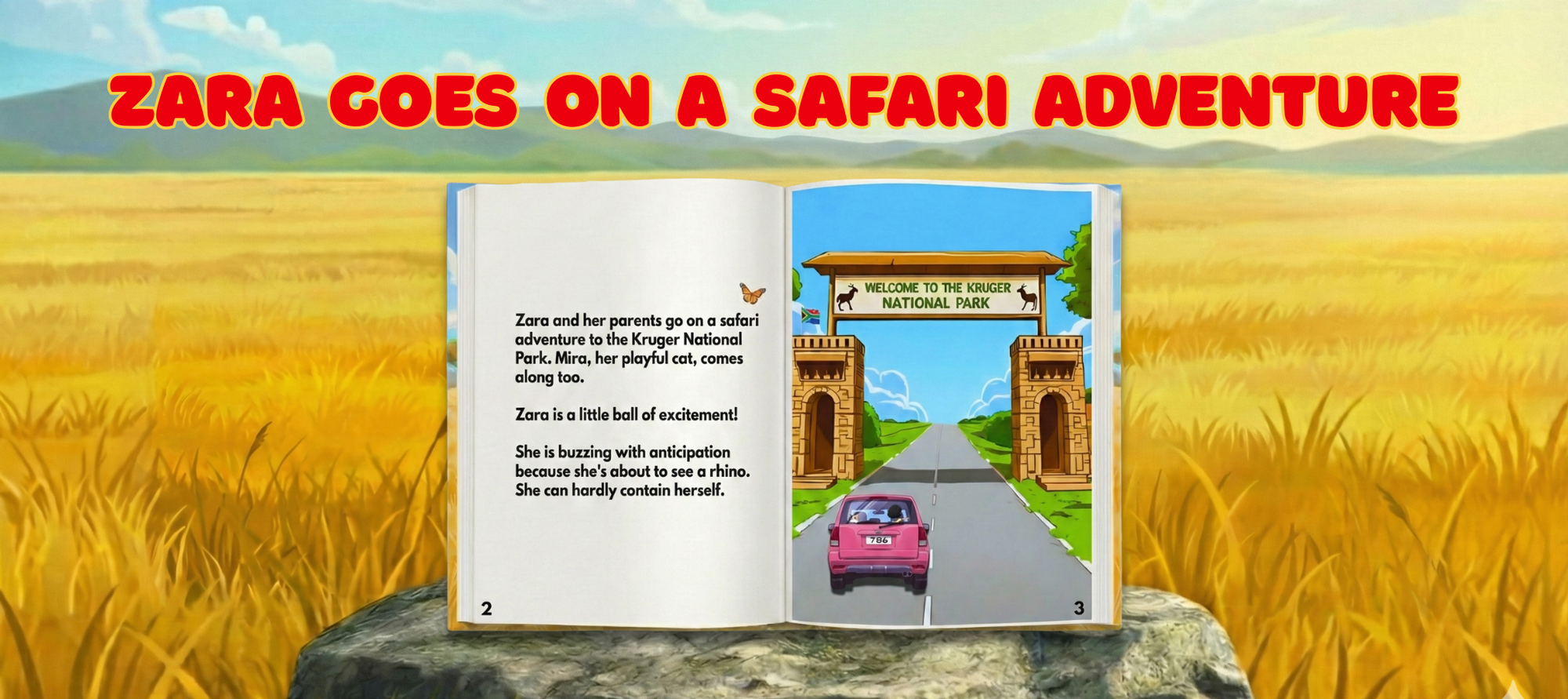 When curious little Zara joins her parents on a safari to the Kruger National Park, she expects to spot lions and elephants, not get swept into a wild adventure!