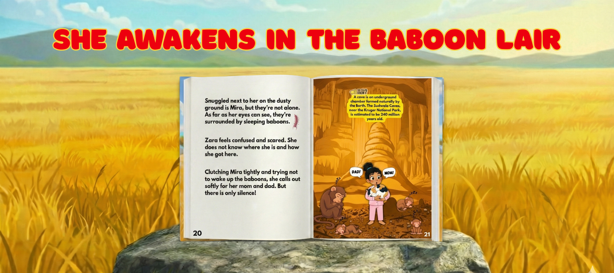 In her first adventure, Zara’s safari turns magical when baboons whisk her into a hidden cave holding a powerful amulet. Suddenly gifted with superpowers, she teams up with her animal friends to take on ruthless poachers.